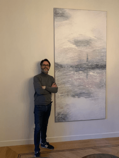 This 2.25-metre-high by 1.20-metre-wide artwork now resides with a family whose child has hearing loss. They purchased the piece from my collection, inspired by the city of Maastricht. The artwork draws inspiration from a photograph by Guy van Grinsven, a renowned Maastricht photographer who tragically passed away from ALS. Just before his passing, the family had the opportunity to acquire this photo, which served as the basis for my painting.