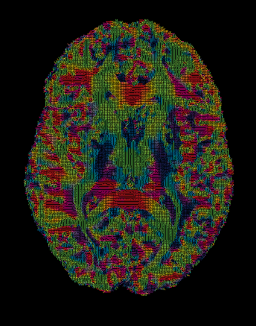 Diffusion tensor image of white matter fibre tracts in the brain of a musician.