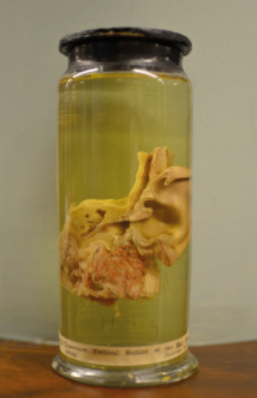 Hunter is well known for his work on bone and cartilage, and for his remarkable studies on the human gravid uterus. A passionate teacher of anatomy, he bequeathed over 3000 anatomical preparations to the University of Glasgow (Figure 2). Forty-five of these specimens are studies of the anatomy of the ear, and whilst little is mentioned in the literature regarding Hunter’s interest in the ear, a closer inspection of these preparations reveals that Hunter had a deep interest in this fascinating part of the human body; his discoveries demonstrating an insight and understanding of auditory function which was well ahead of his time.