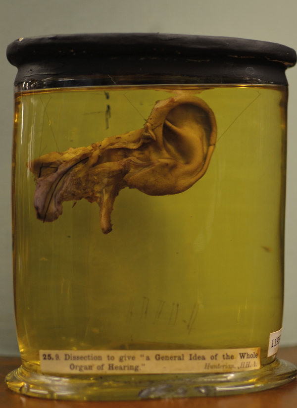 Hunter prepared eight specimens of the external ear, 18 of the middle and internal ear, four of the foetal ear, and 15 of comparative anatomy.
