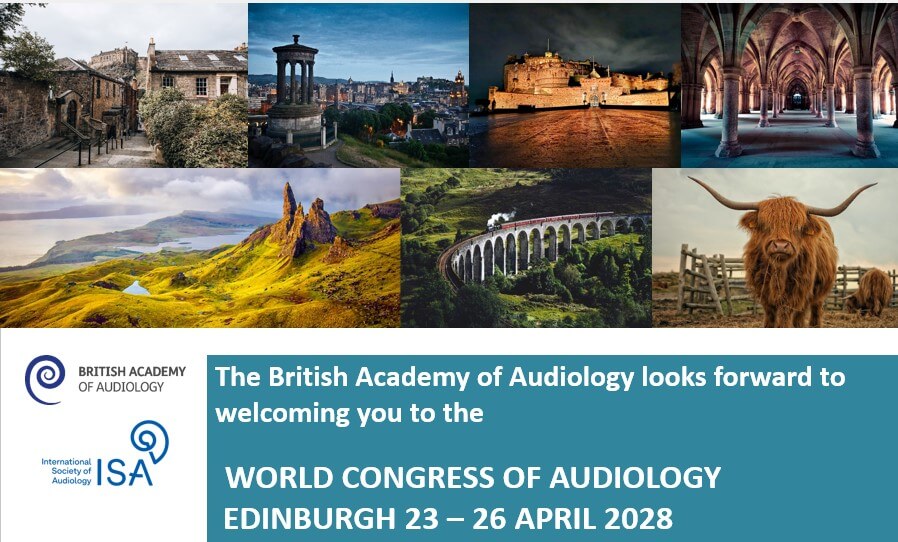 The British Academy of Audiology is delighted to have won its bid to host the International Society of Audiology’s World Congress in 2028 (WCA2028). The 38th Congress will be hosted in Edinburgh, 23-26 April 2028.
