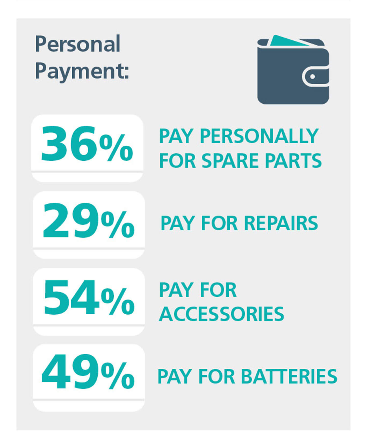 Ongoing funding was a major issue: 54% had to pay for important accessories and 11% had no spares at all. A further 36% had to pay for repairs themselves. These people were reliant on their CI for everyday communication. “I need services so that my CI will work and be supported right up to the day I die,” said one.