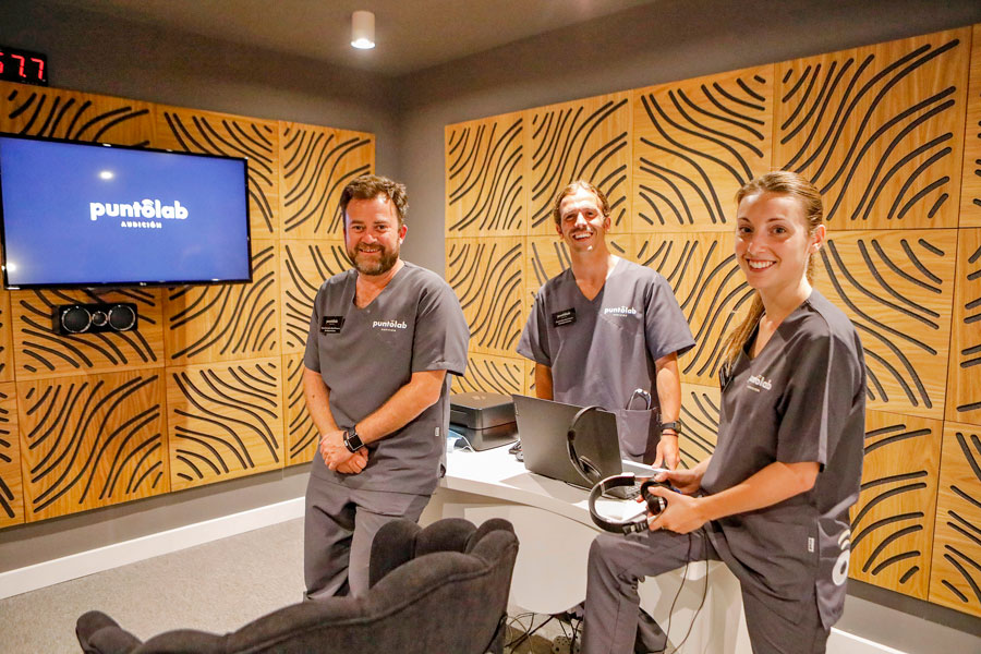 Puntolab Audición has a sound room where the sound environments of patients’ daily lives are simulated, and where hearing aids can be fitted more accurately, anticipating any issues that may arise. It could be called a ‘wind tunnel’ for hearing aids as, in it, real-life testing on the user’s environments is carried out according to each user’s lifestyle, to ensure their hearing aids provide them with the most benefits possible. 360° microphones are used to record the sound environment of the area where the patient wants to improve their hearing, which is then recreated in the sound room to make the most precise fittings.