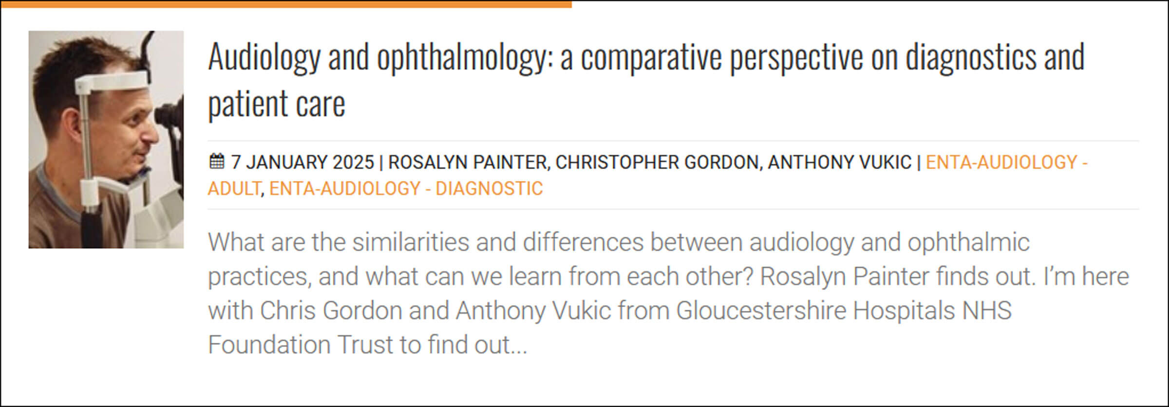You may well be aware that we have a number of sister publications, including Urology News and The PMFA Journal. Roz Painter is one of our colleagues over on Eye News, and in a conversation with audiologist Chris Gordon and healthcare scientist Anthony Vukic, she looks at the cross-over between diagnostics and care of patients in both specialties.