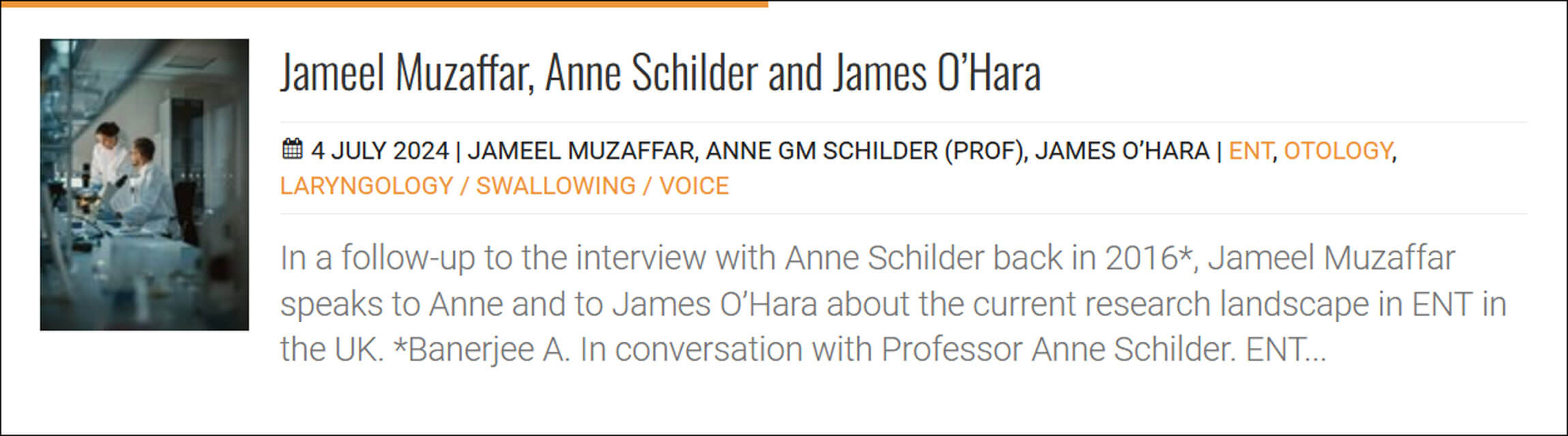 In our features sections this time, we cover a huge range of clinical topics, from microbiomes in sinus disease to hyperacusis and the uses of artificial intelligence (here and here). Within my own subspecialty of laryngology, we hear an update on the long-discussed topic of laryngeal pacemakers and a new type of implant for thyroplasty.