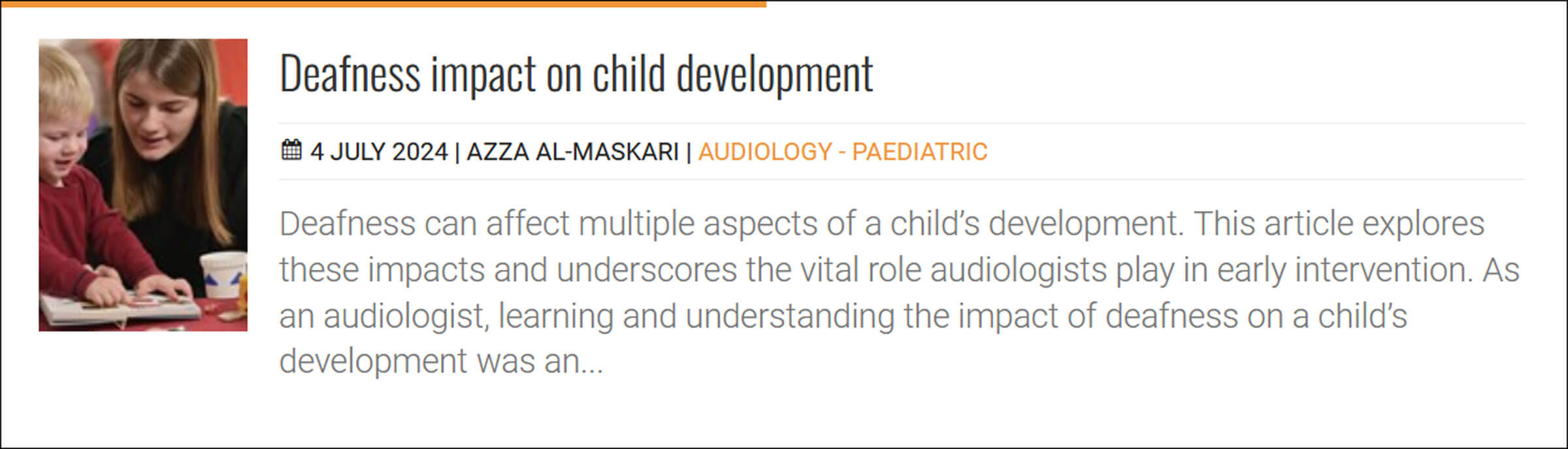 For July/August 2024, we bid a very fond and grateful farewell to Alex Griffiths-Brown, who has been a Section Editor of our Audiology Features for many years. Thank you so much to Alex for her hard work and enthusiasm over the years; we wish you well in your future endeavours.