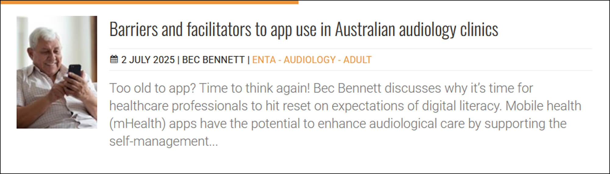 This focus on technology is reflected elsewhere for Jul/Aug 2025, with our Trainee Matters article looking at the future of virtual simulation in audiology training.
