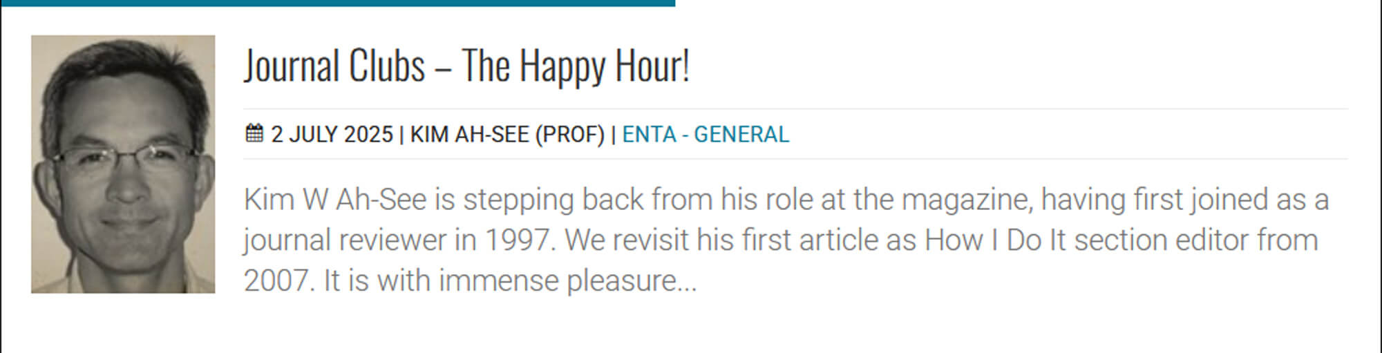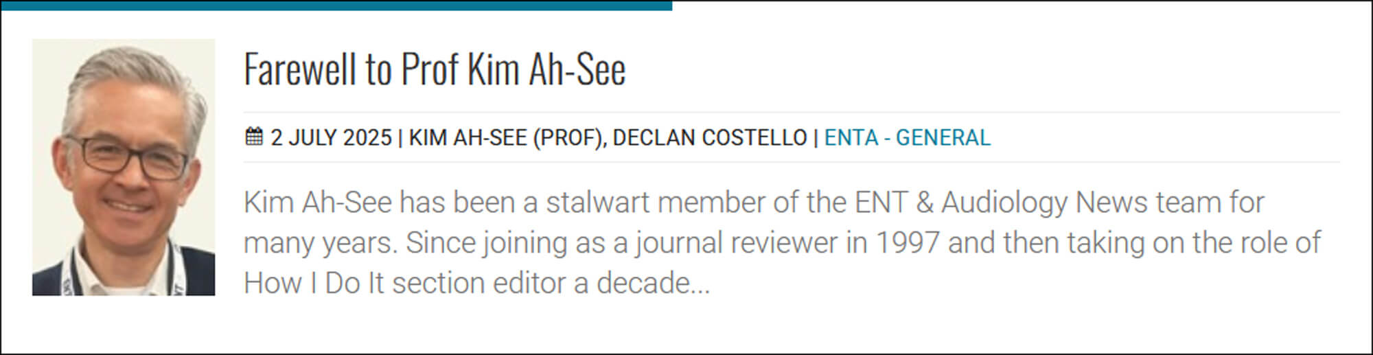 Regular readers will know that we have been publishing supplements in different specialties every four months; these give us up-to-the-minute developments on certain topics. For July/August 2025, we are delighted to feature a group of articles on head and neck surgery, brought together by Ajith George.
