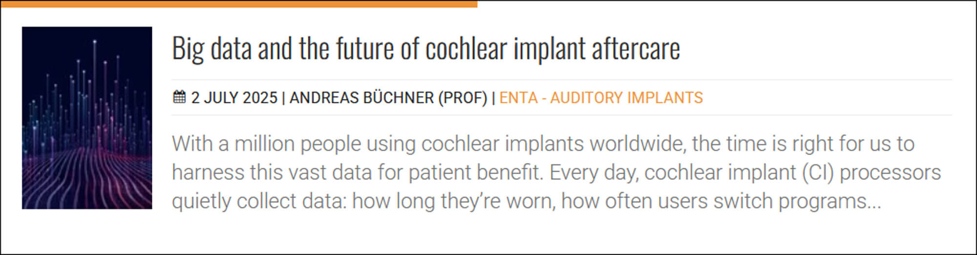 A generation ago, updates in a magazine focused on ENT surgery and audiology would probably have highlighted new surgical techniques and audiological devices. Technological advances in healthcare have moved at an extraordinary pace in the last few years - and perhaps in unexpected directions - and our supplement reflects the fact that artificial intelligence (and specifically machine learning) will have a huge impact on healthcare in the coming years. I am very grateful to Ajith for curating such a fascinating group of articles.