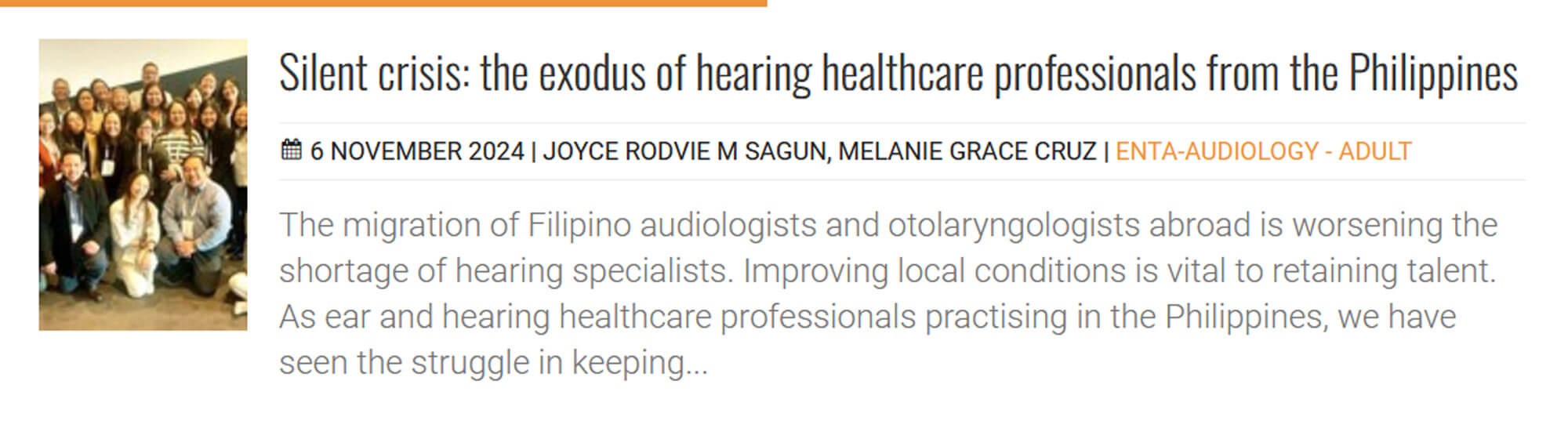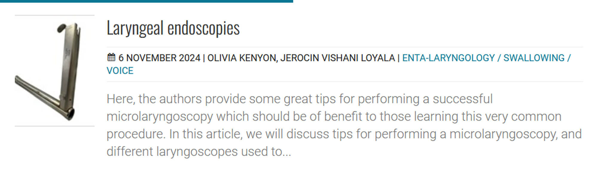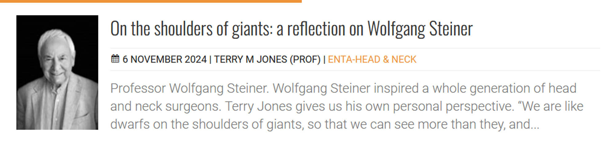 Never let it be said that we don’t provide a broad range of topics for you to digest. For Nov/Dec 2024, we look at subjects as wide-ranging as a pioneer in laser surgery (Profs Vin Paleri and Terry Jones discussing Wolfgang Steiner), stuttering and sensory processing (Max Gattie) and the migration of healthcare workers from the Philippines to the west (Joyce Sagun).