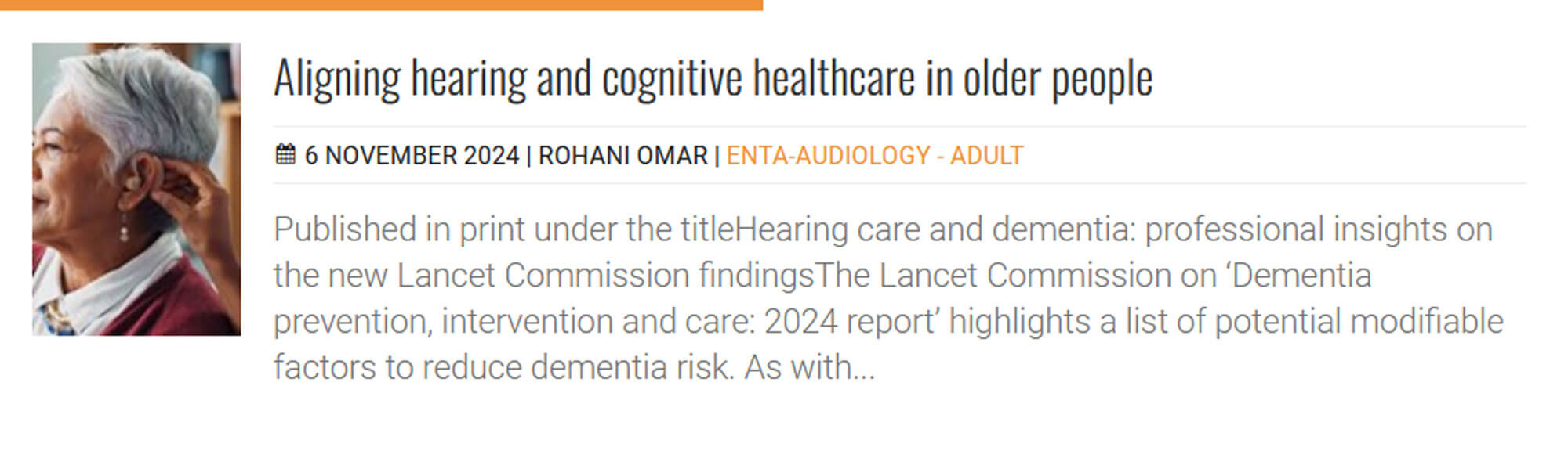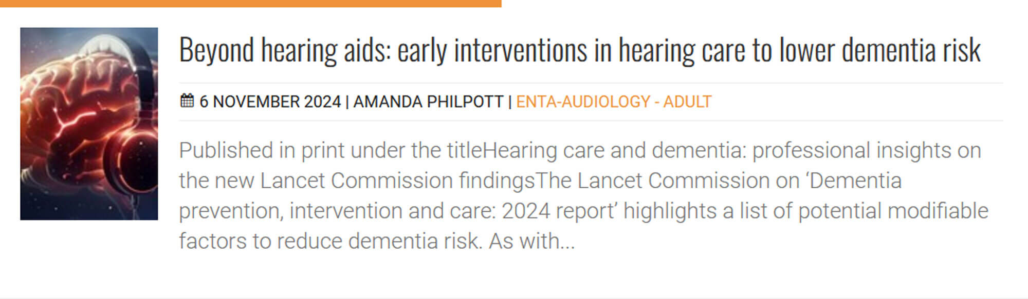 In our audiology articles, we again cover a broad range of subjects. Much has been said over the years about the link between hearing loss and dementia. In articles looking at this in detail, Profs Kevin Munro and Piers Dawes dig into the facts and the misconceptions that have dogged this area for several years. (see here for the first article published online in September and links to the connected pieces).