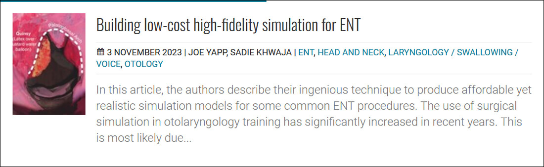 ENT surgeons are often a multi-talented bunch, and Joe Yapp demonstrates this very well: he painted the cover illustration for our last print edition, and for Nov/Dec 2023 he tells us about ‘Building low-cost high‑fidelity simulation for ENT’ - specifically a model that can be used in the training of orbital decompression techniques.