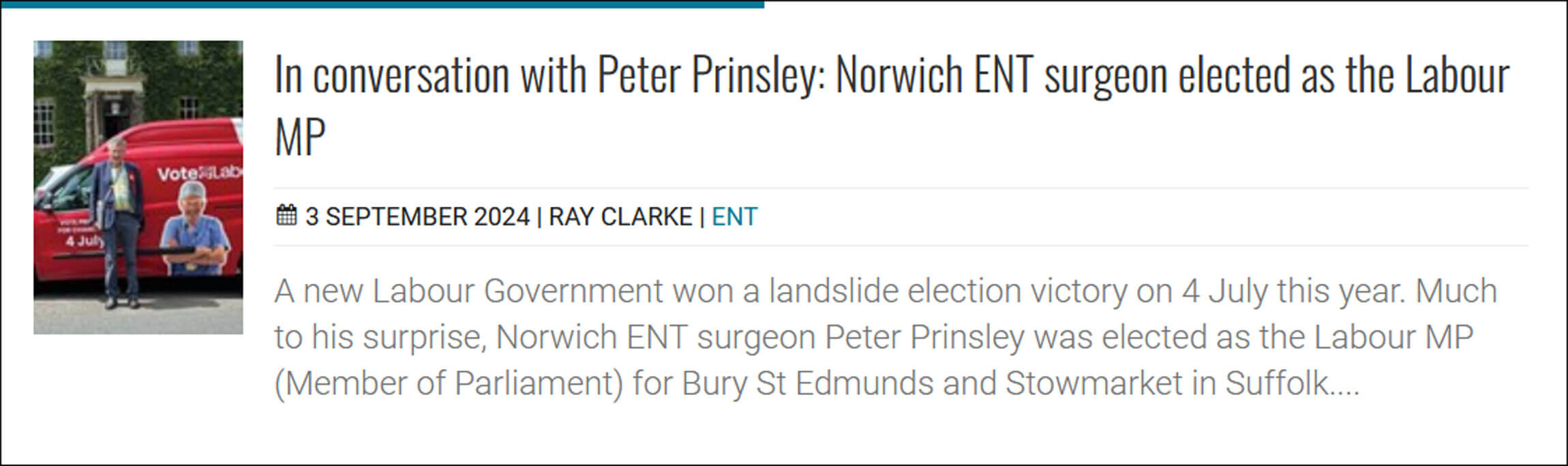 With our next edition in a couple of months, you will receive a special supplement on rhinology: Prof Claire Hopkins has brought together a series of fascinating topics - more on that in November. For our friends in industry who manufacture rhinology equipment, if there are any companies who would like to publicise their products alongside those articles, please do make contact.