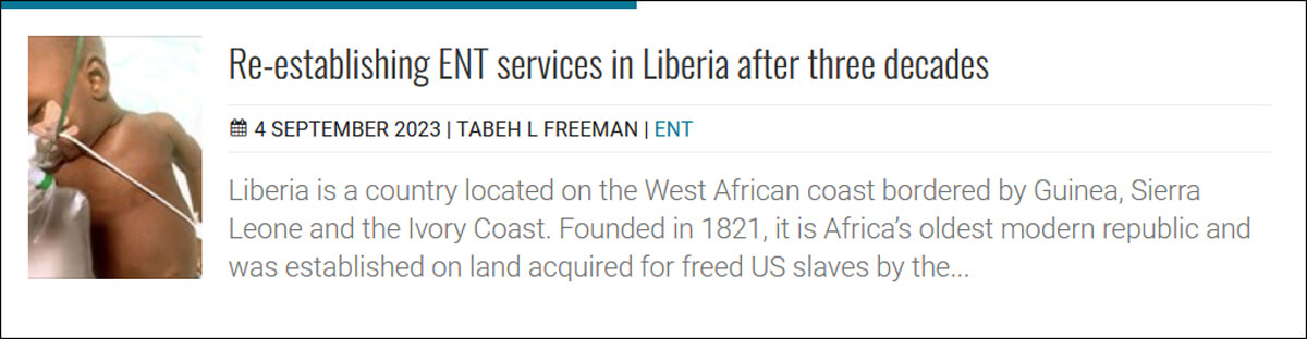 As regular readers will know, our Global Health articles shine a spotlight on LMIC (low- and middle-income countries), and we focus in this edition on the West African country of Liberia. We hear that its population of 4.5 million has just started benefitting from its first ENT surgeon since 1847. Read more about this remarkable individual here.