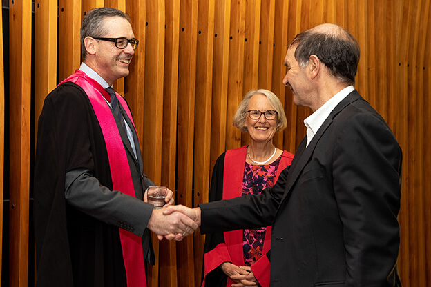 (Image: Inaugural GPRWMF Professor Richard Douglas with the Dean and Cardiac Surgeon at his first oration.)