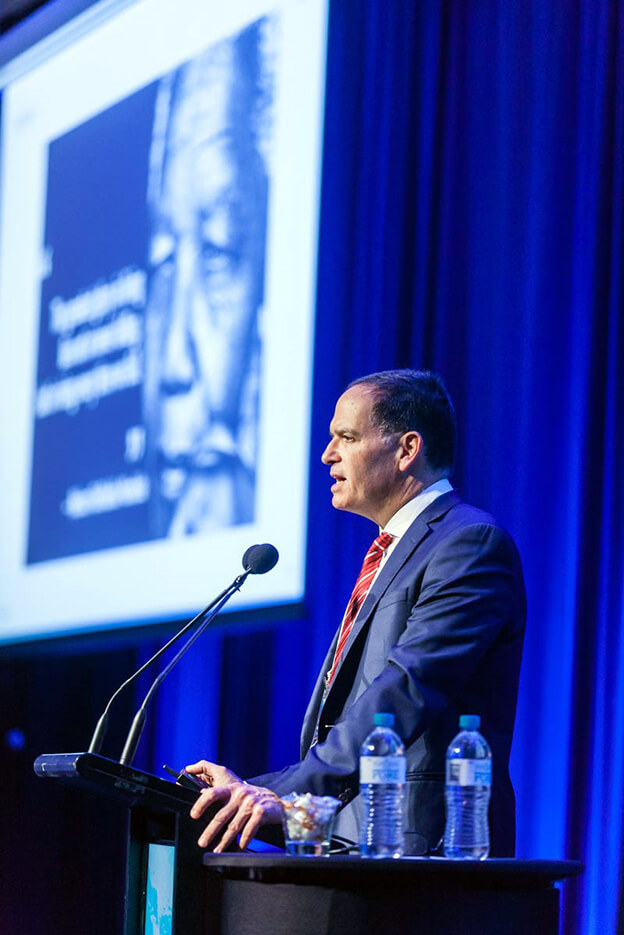 (Image: Professor Peter Friedland lecturing about his friend and patient Nelson Mandela.)