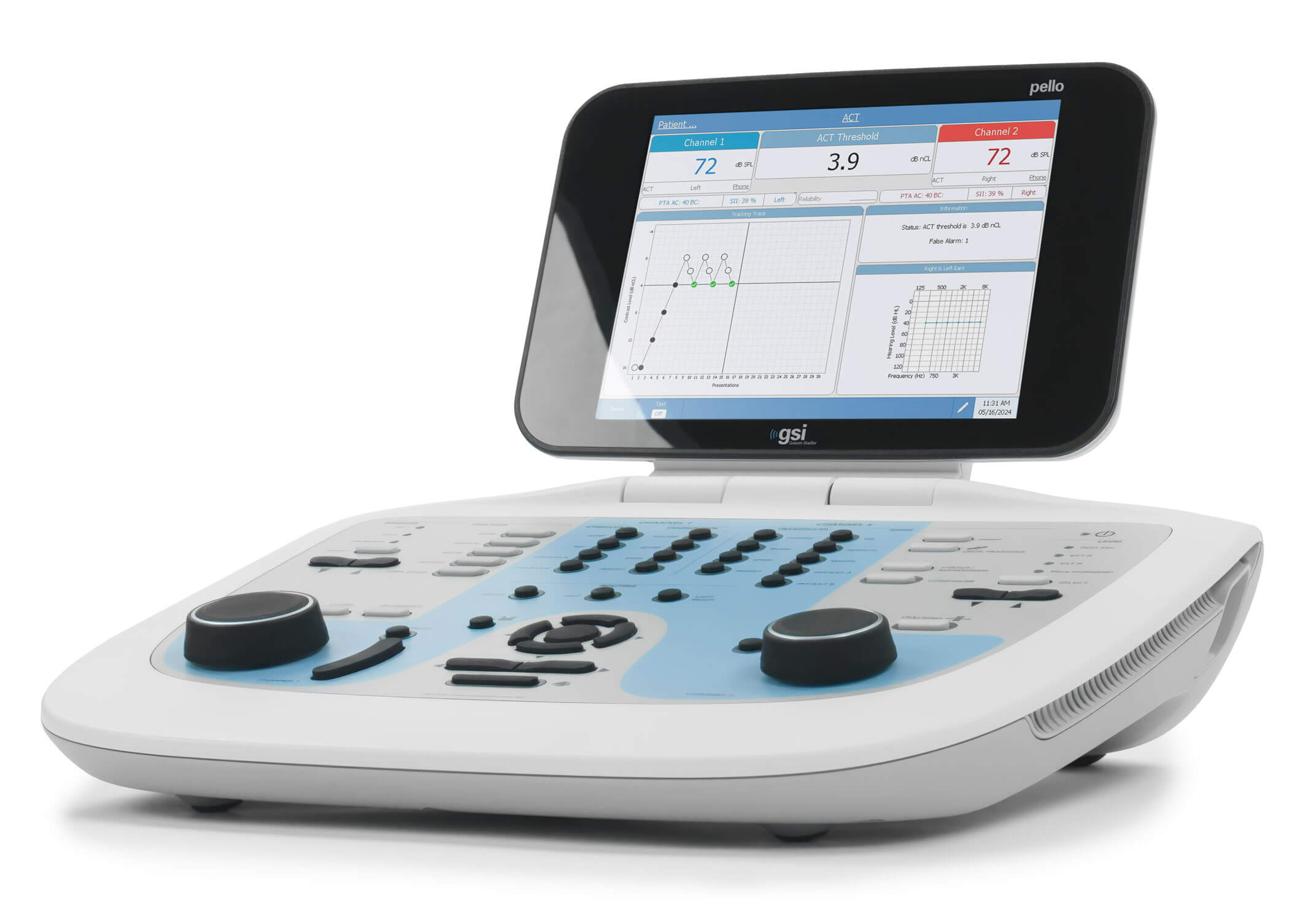 These updates are released to align with recent updates that were also implemented on the GSI AudioStar Pro™, the most significant being the inclusion of the new ACT™ (Audible Contrast Threshold) test when new Pello devices are purchased with the Speech Plus license. The ACT test uses a method that is not dependent on language to predict a patient’s aided hearing performance in noise. These results are used to guide recommendations for which hearing aids may be most appropriate for the patient and what settings may best help them in difficult hearing situations.