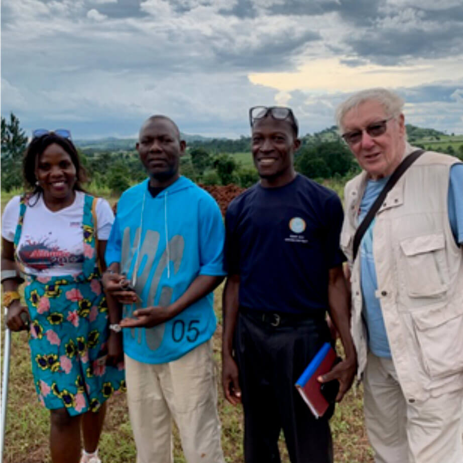 Sebastian Waiswa and Peter Mount with friends in Uganda, making plans for the new school.