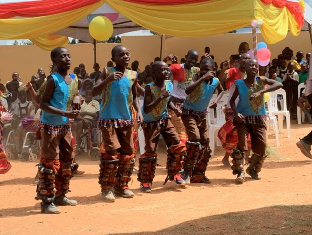 Ugandan children dancing at an event.
