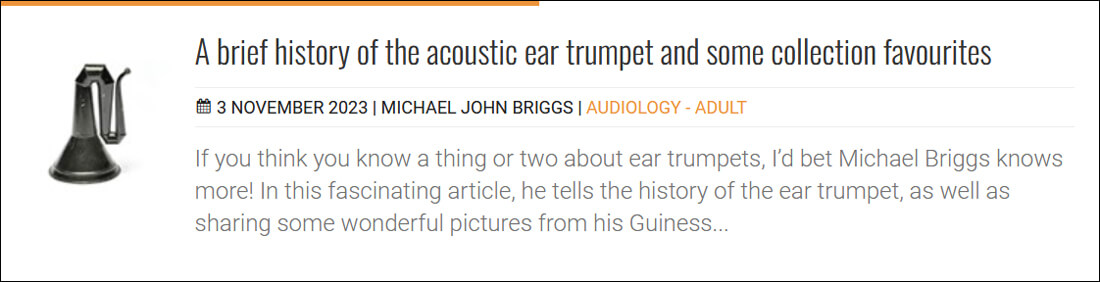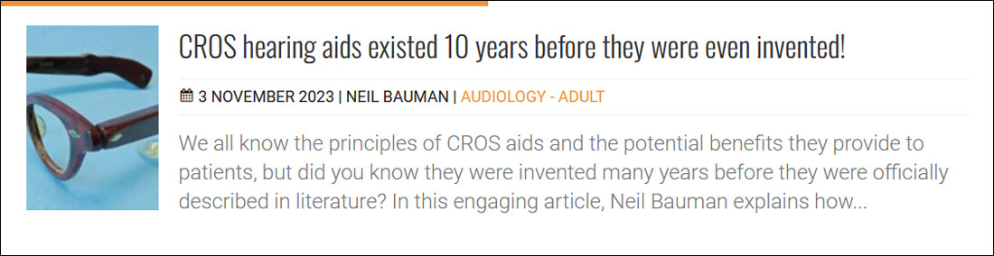 When I was asked to edit ENT&A Nov/Dec 2023 on the history of hearing devices, I knew it was going to be interesting, but I hadn’t realised quite how varied it would be. I regularly fit CROS hearing aids, yet have never given a second thought to the history behind them, so Neil Bauman’s article on their accidental invention was quite an eye opener (pun intended)!