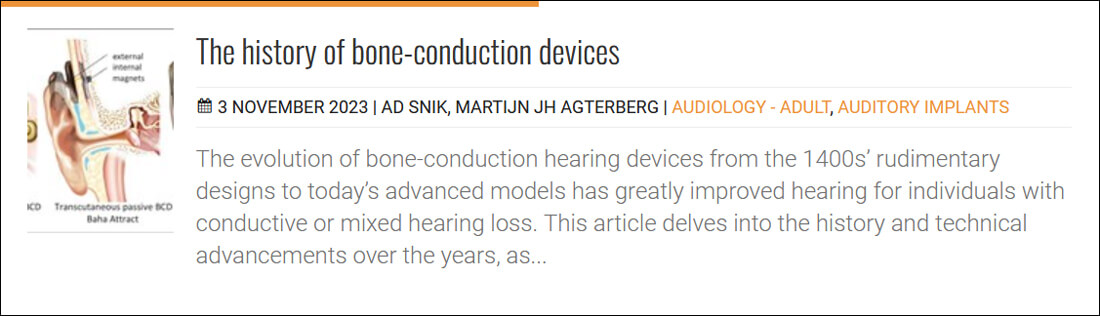 Bone-conduction hearing devices offer a fantastic solution to patients with conductive hearing loss or single-sided deafness, but I certainly wouldn’t have imagined that their early iterations were devised in the 1400s! Ad Snik explains the development from a metal rod held between the teeth to today’s technology.