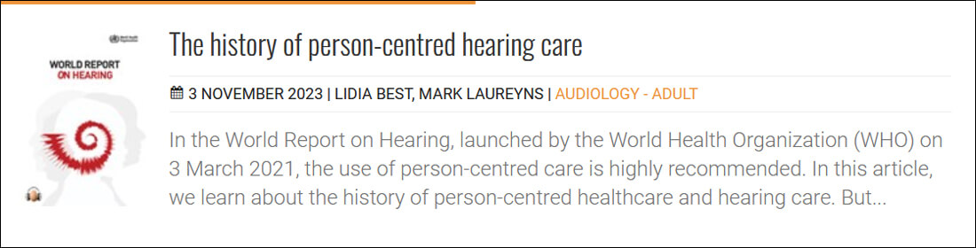 The final article for Nov/Dec 2023 doesn’t strictly come under the heading of a ‘hearing device’, but I thought it was an important one to include. Hearing devices are part of the answer to hearing rehabilitation, but the professional care and support surrounding these devices is arguably as important as the technology. Many audiology professionals are aware of the principles of person-centred hearing care but, as Lidia Best and Mark Laureyns highlight in their article, it should be at the core of everything we do in audiology education and clinical practice. However, there is still a way to go before this is the reality.