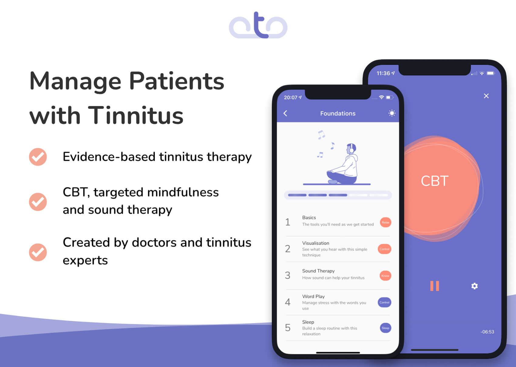 This app is leading the way in digital treatments by providing high quality spoken therapy. Patients gain immediate access to CBT sessions, tinnitus targeted mindfulness and a wide range of sound therapy. Recent data suggests that 86% of users see significant improvement in their overall tinnitus severity after just one month.