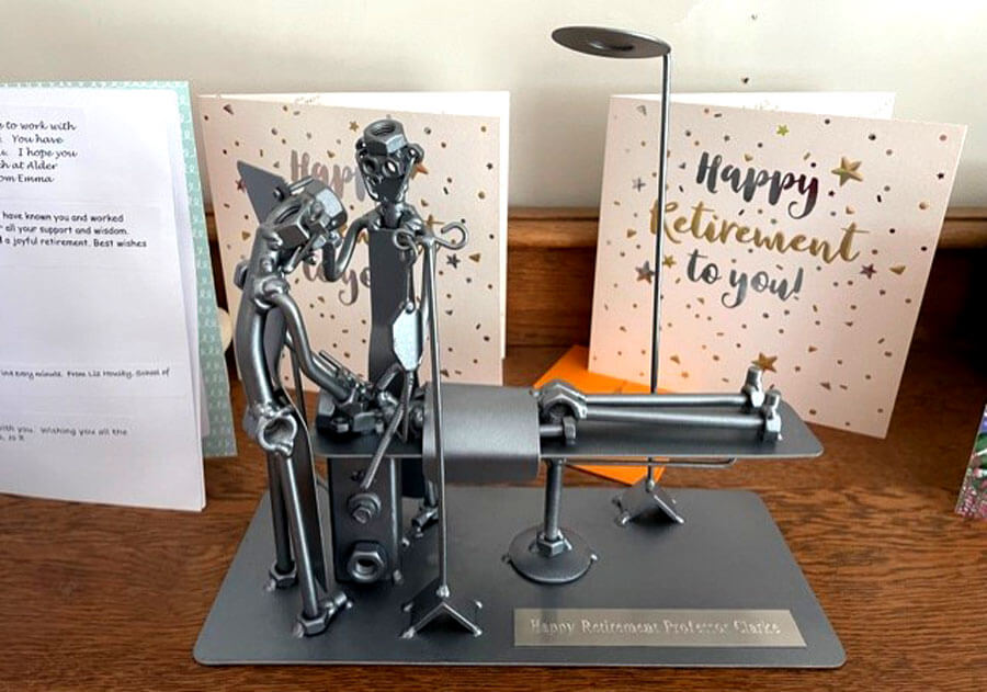 On his departure, he was presented with the most fabulous memento: a custom-made sculpture, engraved with his name, complete with anaesthetist!