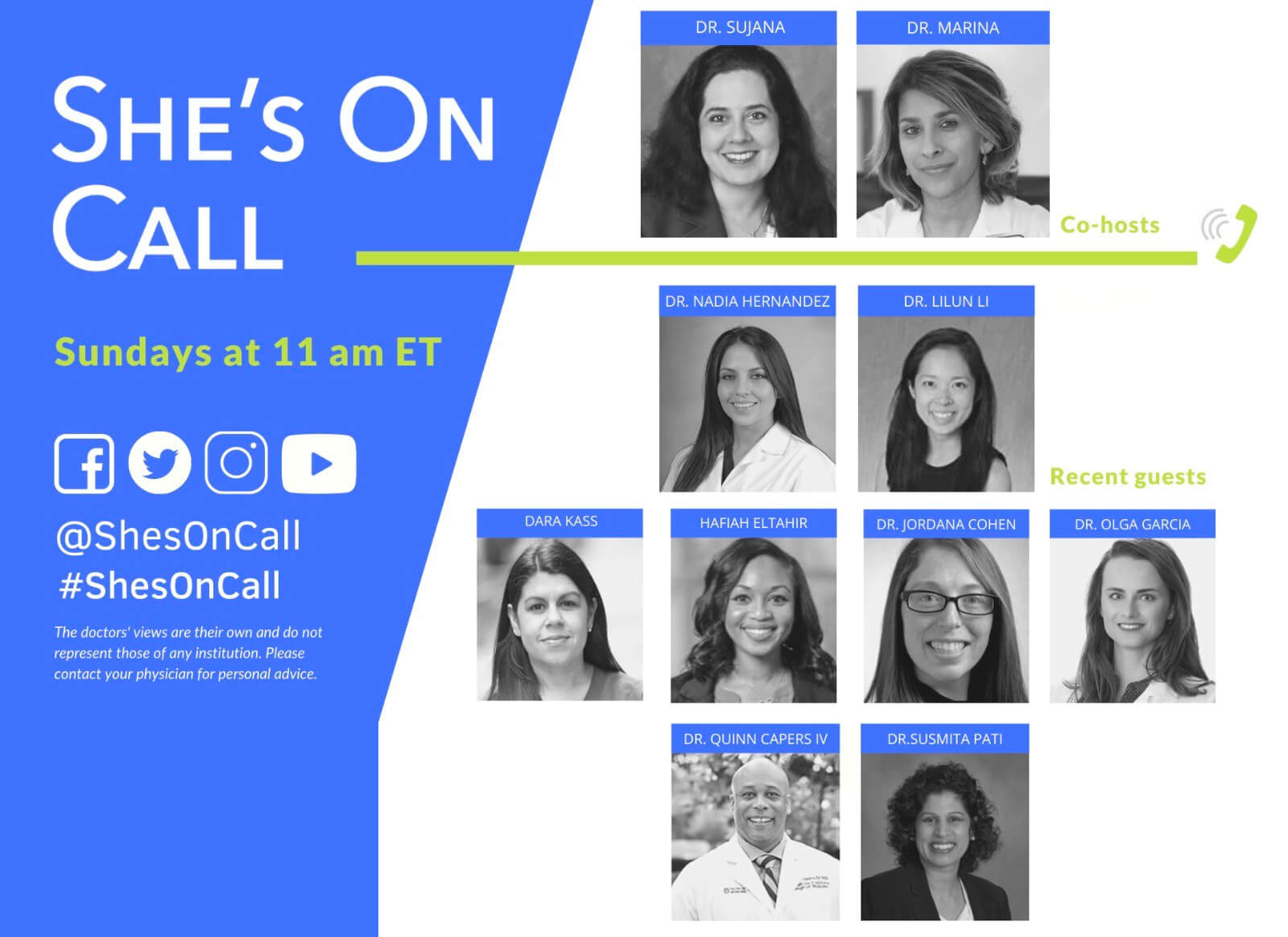 Each Sunday at 11am ET (3pm GMT), they talk about the important medical news of the week and feature two guest medical experts. Viewers ask questions and get answers in real time. The conversation is lively and informative, and has so far covered COVID-19, Emergency Medicine, Otolaryngology, Facial Trauma, General Surgery, Anesthesiology, Nephrology, Cardiology and Paediatrics.