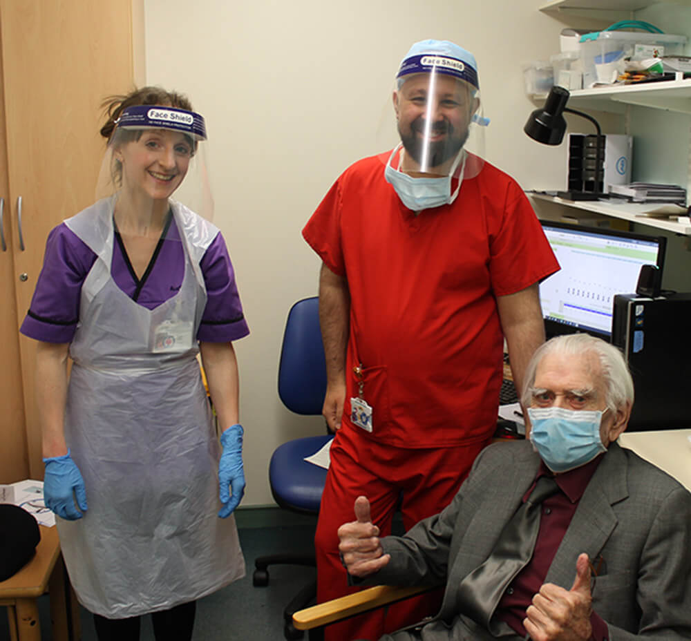 Mr Noweed Ahmad (right), Consultant ENT, Skullbase and Auditory Implant Surgeon at the trust said: “Leslie walked into my clinic, told me it was his 103rd birthday and that, after researching it, he wanted a cochlear implant to restore his hearing.
